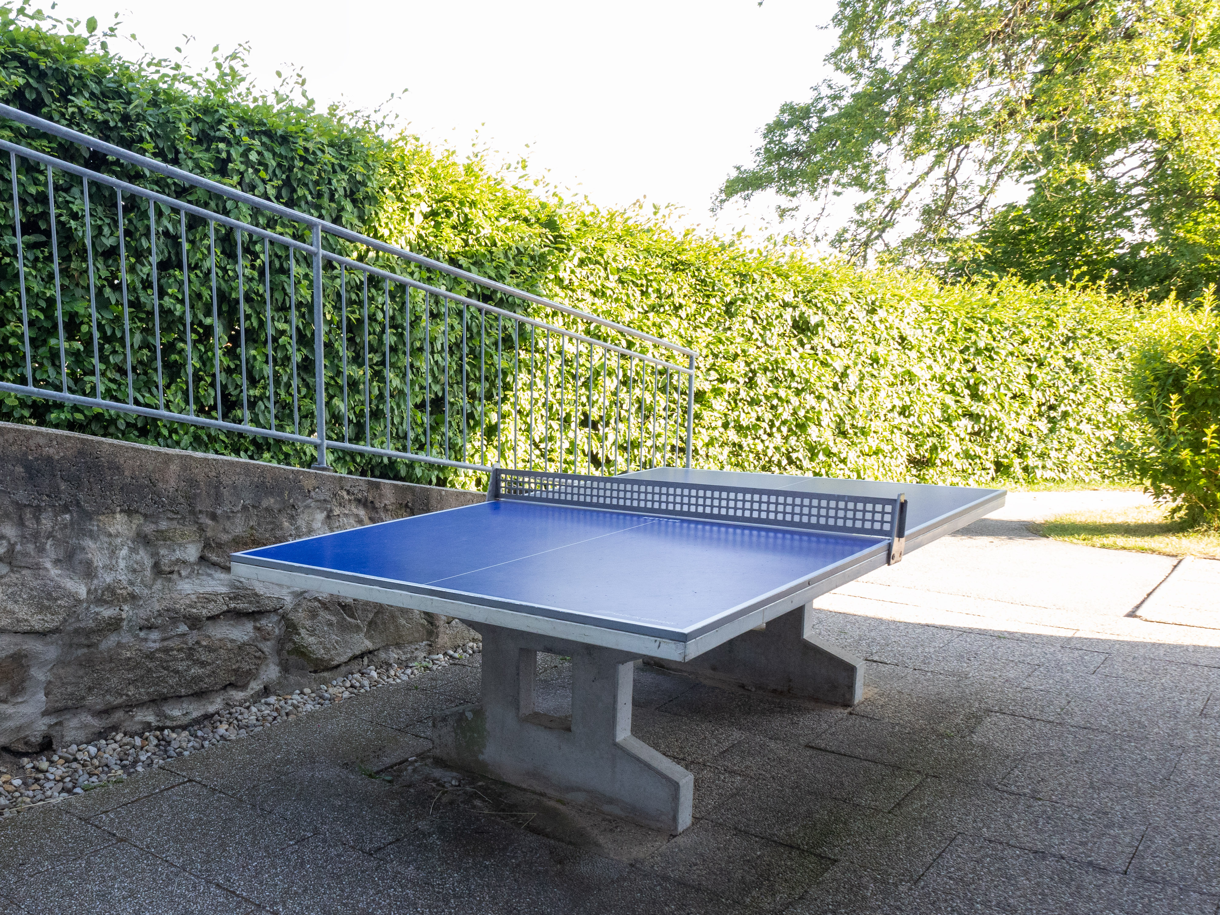 Die Tischtennisplatte ist am EIngang zum Hallenbad zu finden