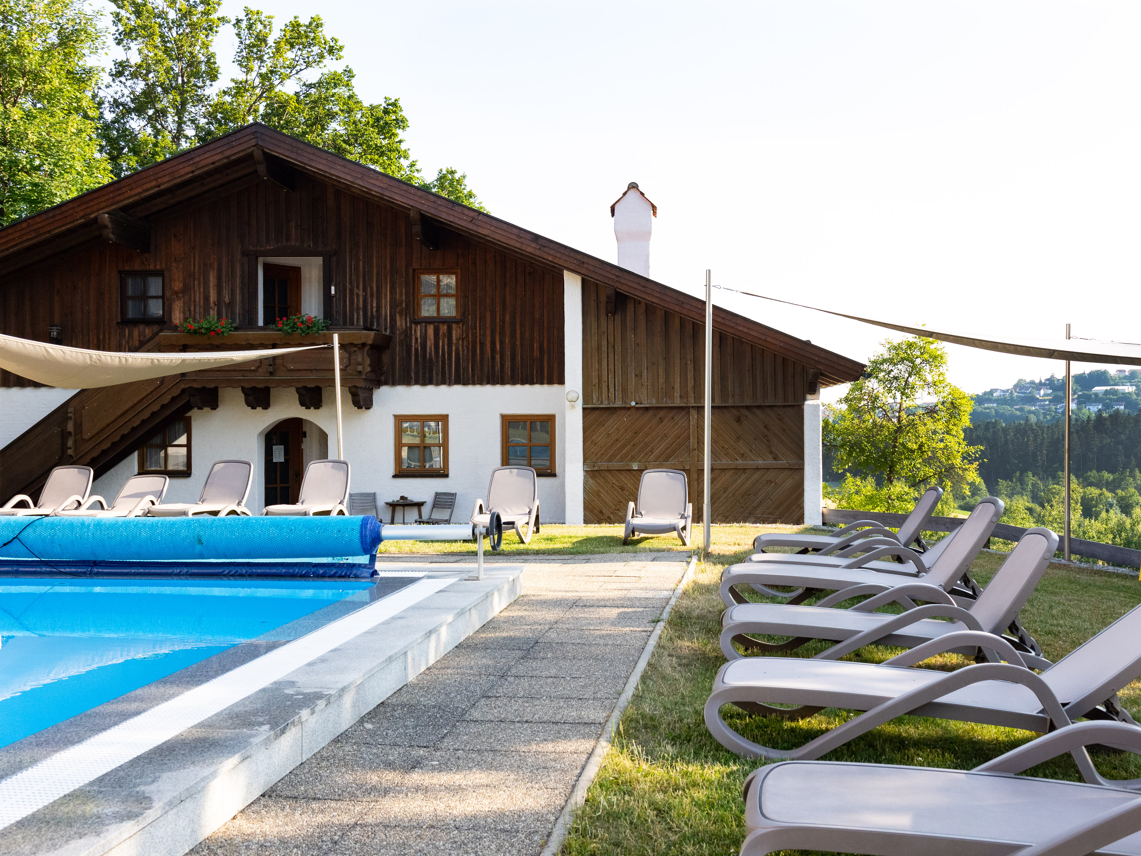 Ruhig gelegene Ferienwohnung mit Fernblick in einer Ferienwohnungsanlage im Bayerischen Wald mit Pool und Sauna.