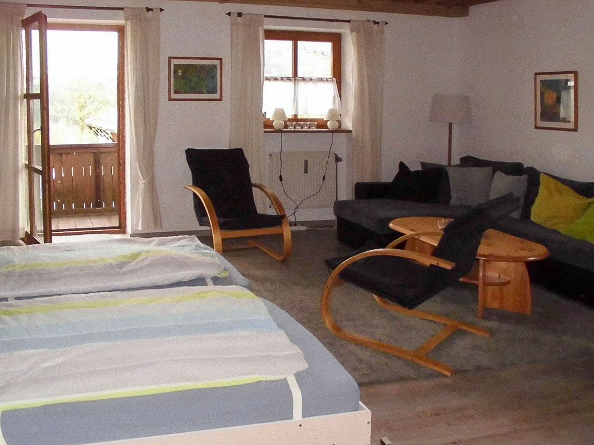 Auf dem großen Balkon können Sie die idyllische Aussicht auf die umliegende Natur genießen, während Gartenmöbel, Sonnenliegen und ein Sonnenschirm zum Entspannen einladen. Die Wohnung ist rauchfrei, allergikerfreundlich und auch für Rollstuhlfahrer geeignet. Haustiere sind nicht erlaubt.